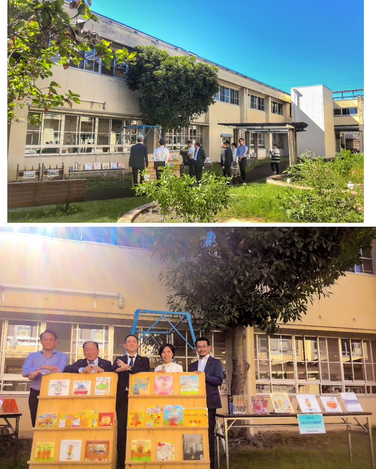 贈呈式後は、当日開催された【あおぞら図書館】に、寄贈本を並べました。