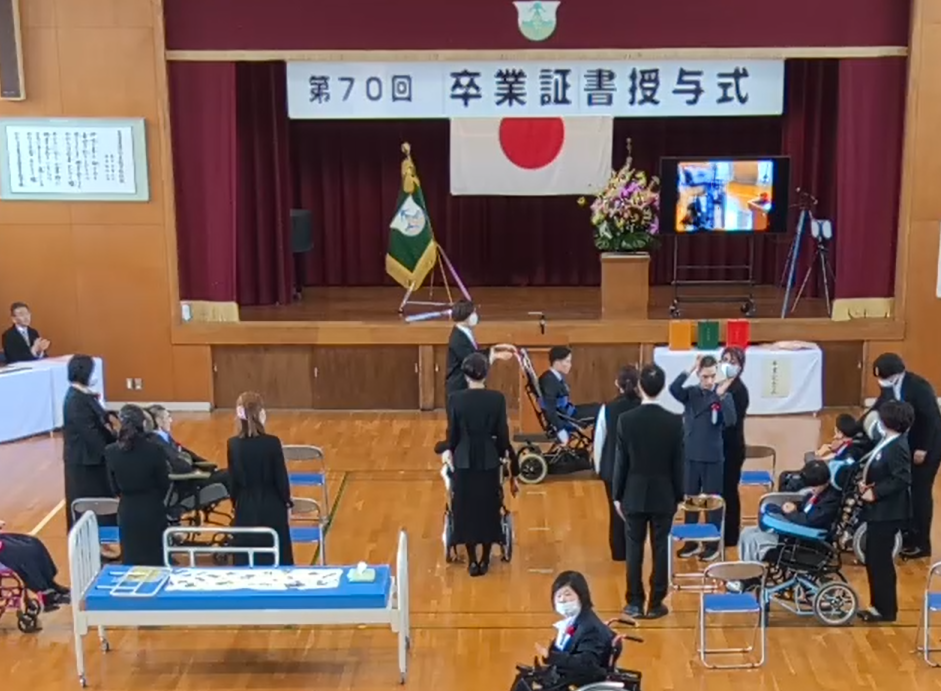お知らせ/中学部/学校生活/小学部/訪問教育/高等部 令和7年度 第70回 卒業式 2026年3月17日 3月4日(水)に高等部、3月5日(木)に中学部、3月10日(火)に小学部の卒業証書授与式を行いました。 3日間とも天候に恵まれ、晴れやかな顔で未来への躍進を誓いました。