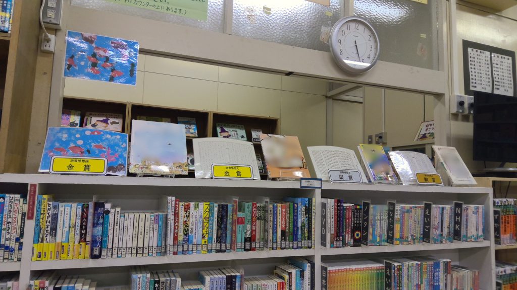 まず、入館したら、右手側のカウンターに御注目ください。校内【読書感想文・読書感想画】コンクールの受賞作品が展示してあります。今年も、なかなかの力作ぞろいですので、先輩や友達の感想文や感想画に、ぜひ目を通してみてくださいね。温かい気持ちが伝わってくること間違いなしです!